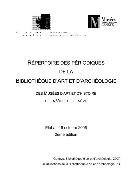 Repertoire Des Periodiques De La Bibliotheque D Art Ville De Geneve