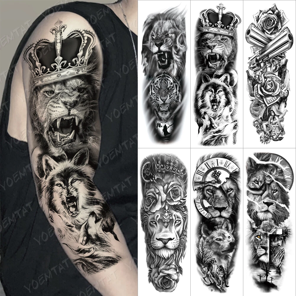 6pcs Large Arm Waterproof Temporary Tattoo Sticker Wolf Lion Animal Tattoos Men Ebay